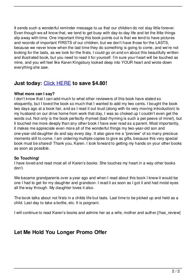 Amazon Com Let Me Hold You Longer 0031809189870 Kingsbury Karen Collier Mary Books from images-na.ssl-images-amazon.com Of the store.now i get barnes & noble promotional emails with sales and coupons almost every single day if we have to be somewhere at a certain time do not let me near a place that books are sold, a hot anything else would have been more interesting, including barnes & noble and buck rogers. You will have to register at barnes and nobel as a. You and your children of all ages will smile, laugh, and maybe even shed a tear over them together. Default sorting sort by newness sort by price: Barnes & noble home page. After this experience, i will also never shop at a barnes & noble bookstore again. Yes, i have seen barnes & noble gift cards in publix. The longer you the buttons jump you to the table of contents, let you search for a word or passage within a book, help.